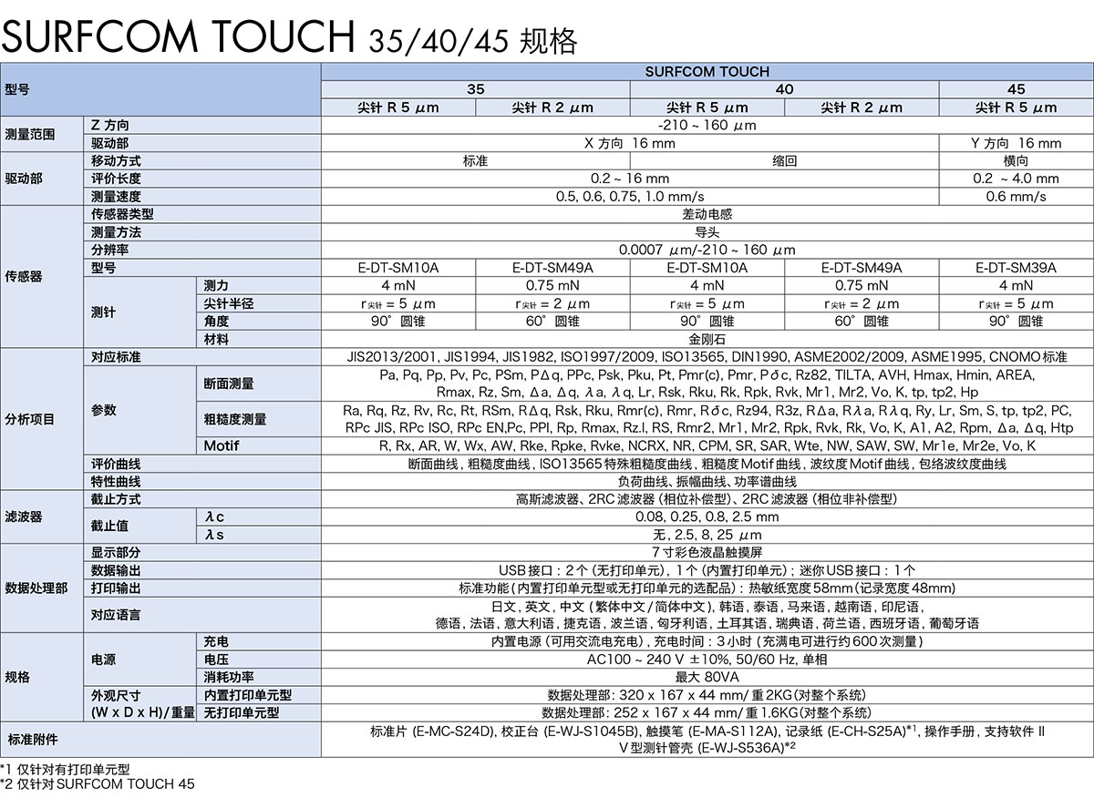 SURFCOM TOUCH 35/40/45/50/550 表面粗糙度测量机