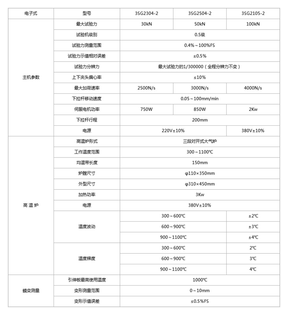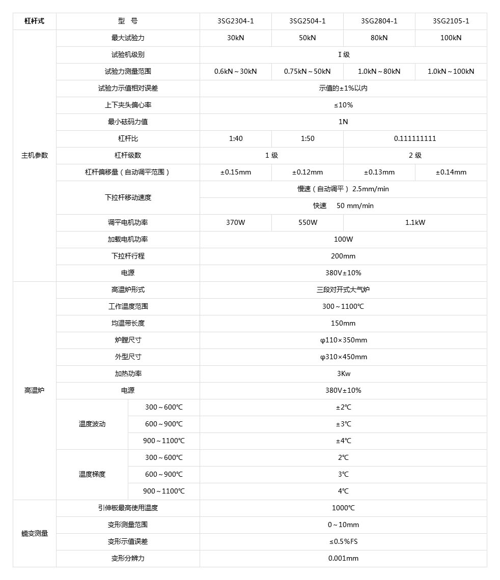 高温蠕变持久强度试验机分为3SG-200-1系列的杠杆式高温蠕变持久强度试验机和XBG-200-2系列的电子式高温蠕变持久强度试验机。
