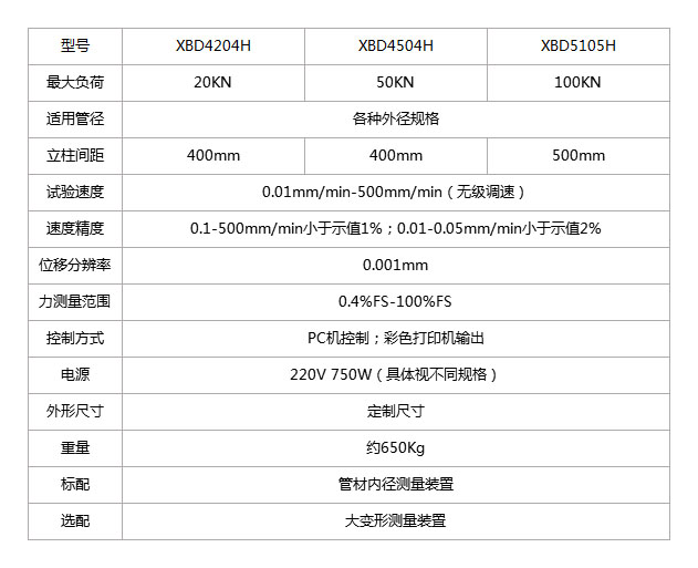产品概述:微控型环刚度试验机为双丝杠,主机、控制、测量、操作一体化结构。适用于各种塑料管材、复合管道、玻璃钢管材的力学性能检测:如环刚度、环柔性、扁平及蠕变比率等试验,以及缝的拉伸、钢丝拉伸、钢带拉伸等试验。满足波纹管、缠绕管和各种塑料管材测试标准的要求。软件系统具有试验参数设定存储、试验数据采集、处理分析、显示打印曲线、测试报告打印输出等功能。该系列试验机广泛应用于科研机构、大专院校、质检部门、及管材生产企业